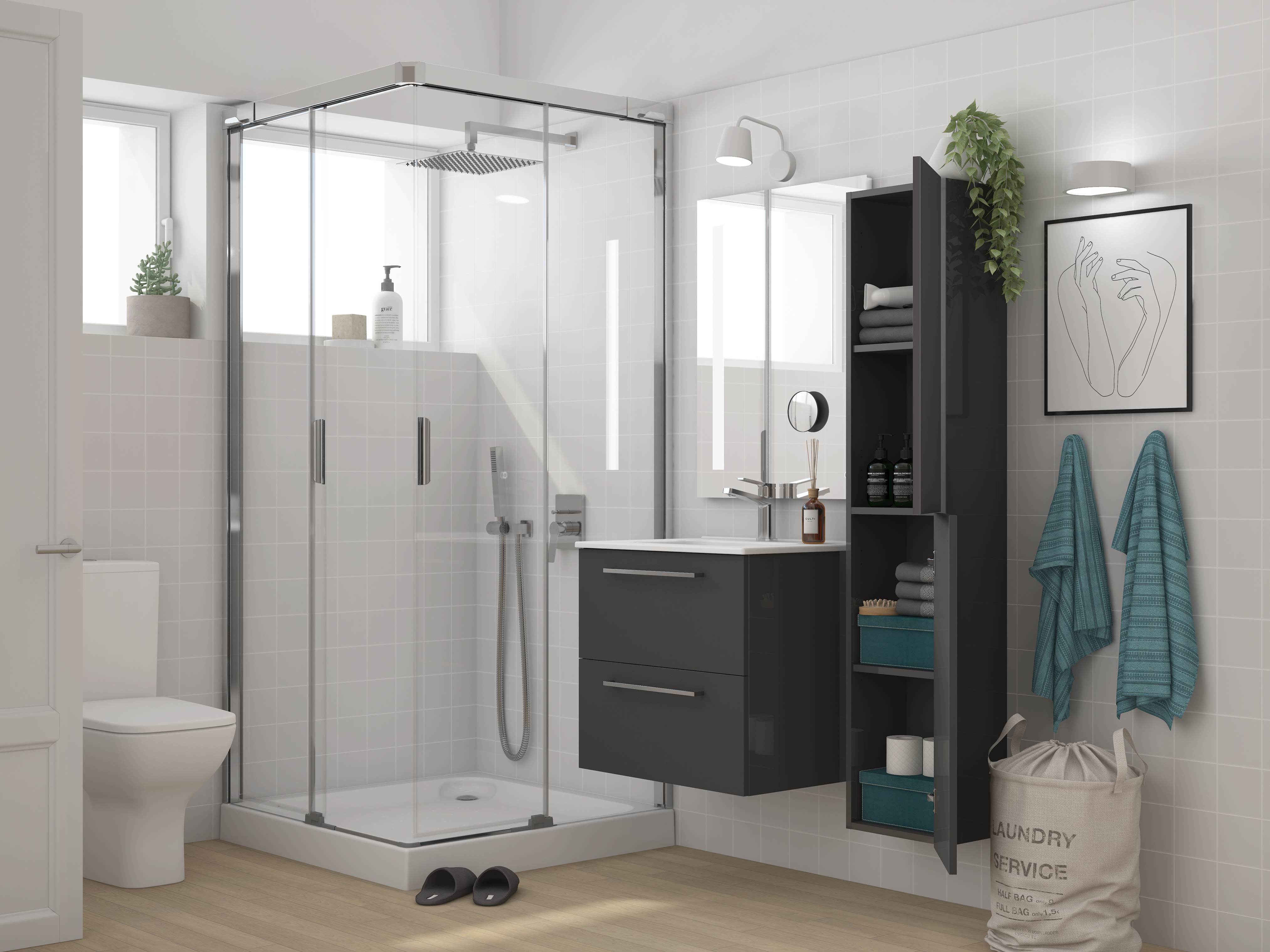 Antares is a collection of rectangular LED-illuminated mirrors, available in 3 sizes. Each mirror featured a a frosted light strip along the top, demister function synced with lighting, and a magnetic magnifying mirror that can be positioned over most of the mirror's surface.